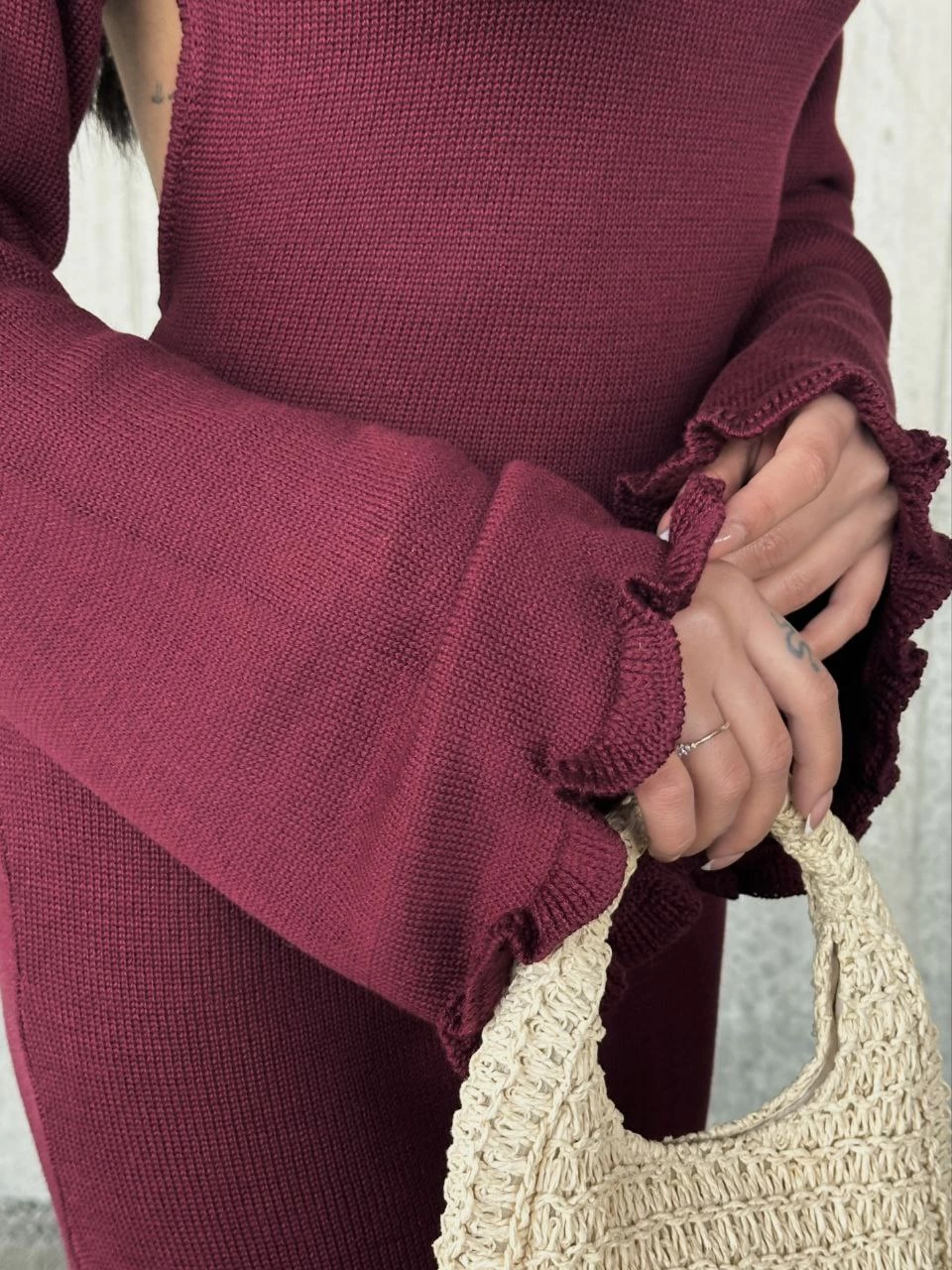 Sofanest Acık Sırt Detaylı Maxi Uzun Boy Elbise- Bordo