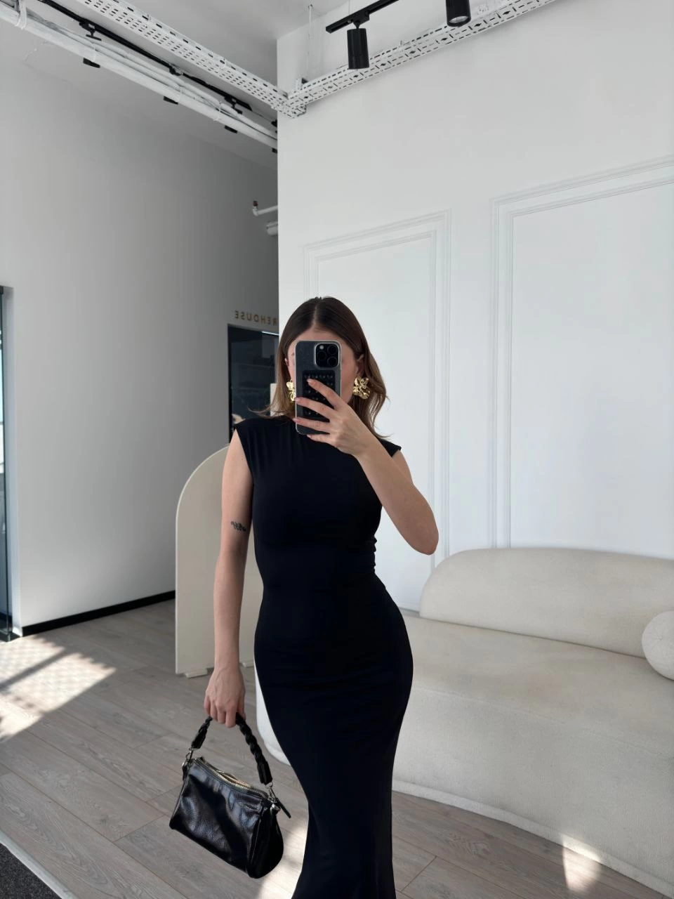 Sofanest Kolsuz Uzun Likralı Elbise - Siyah