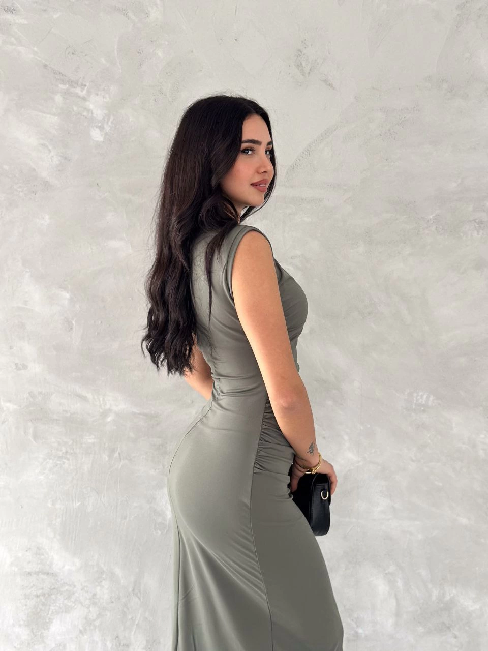 Sofanest Kolsuz Yırtmaçlı Uzun maxı boy Elbise - Yeşil