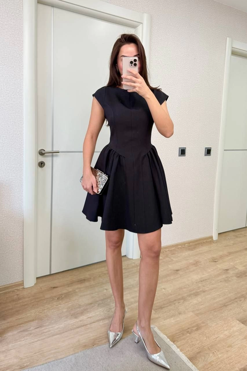 Sofanest Sırt dekolteli Çan Detaylı Mini Elbise - Siyah