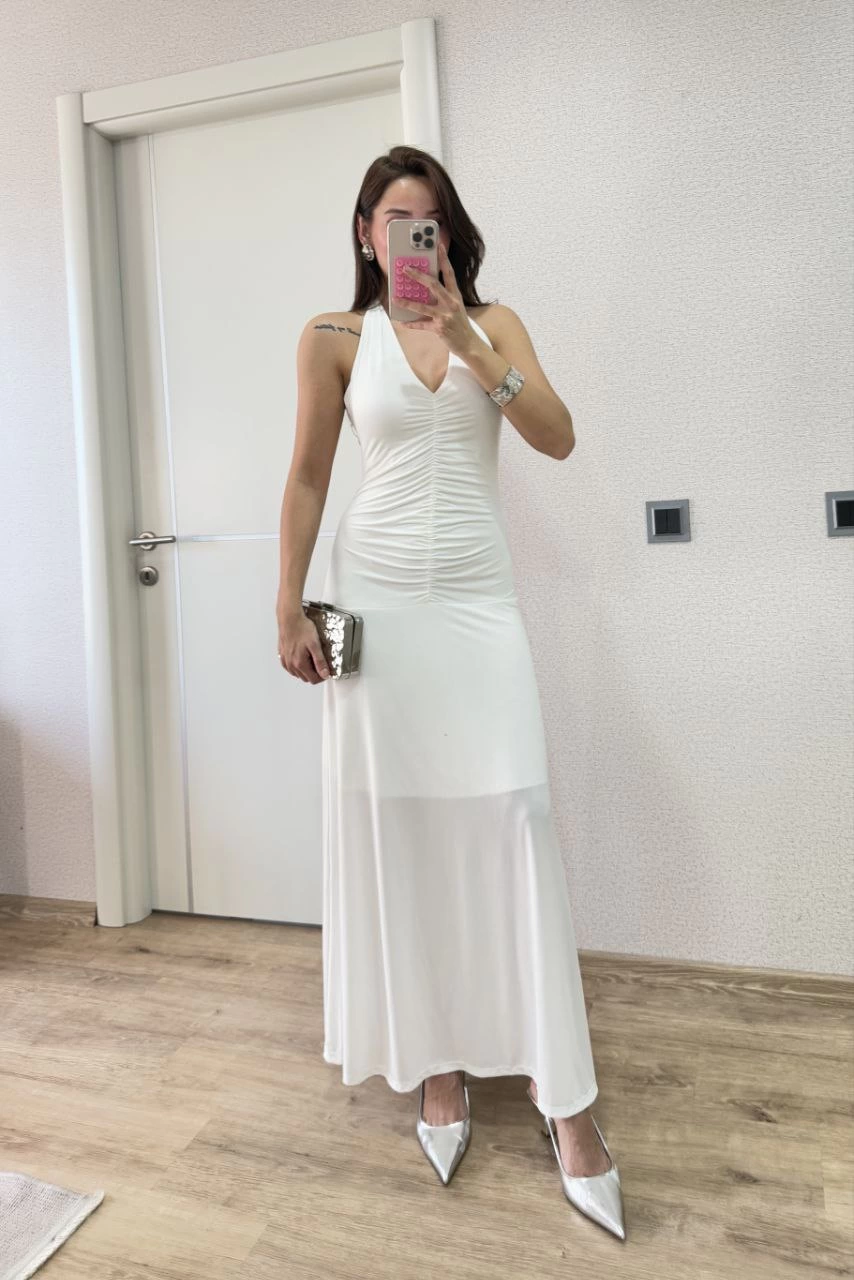 Sofanest Sırt dekolteli Uzun Elbise - Beyaz