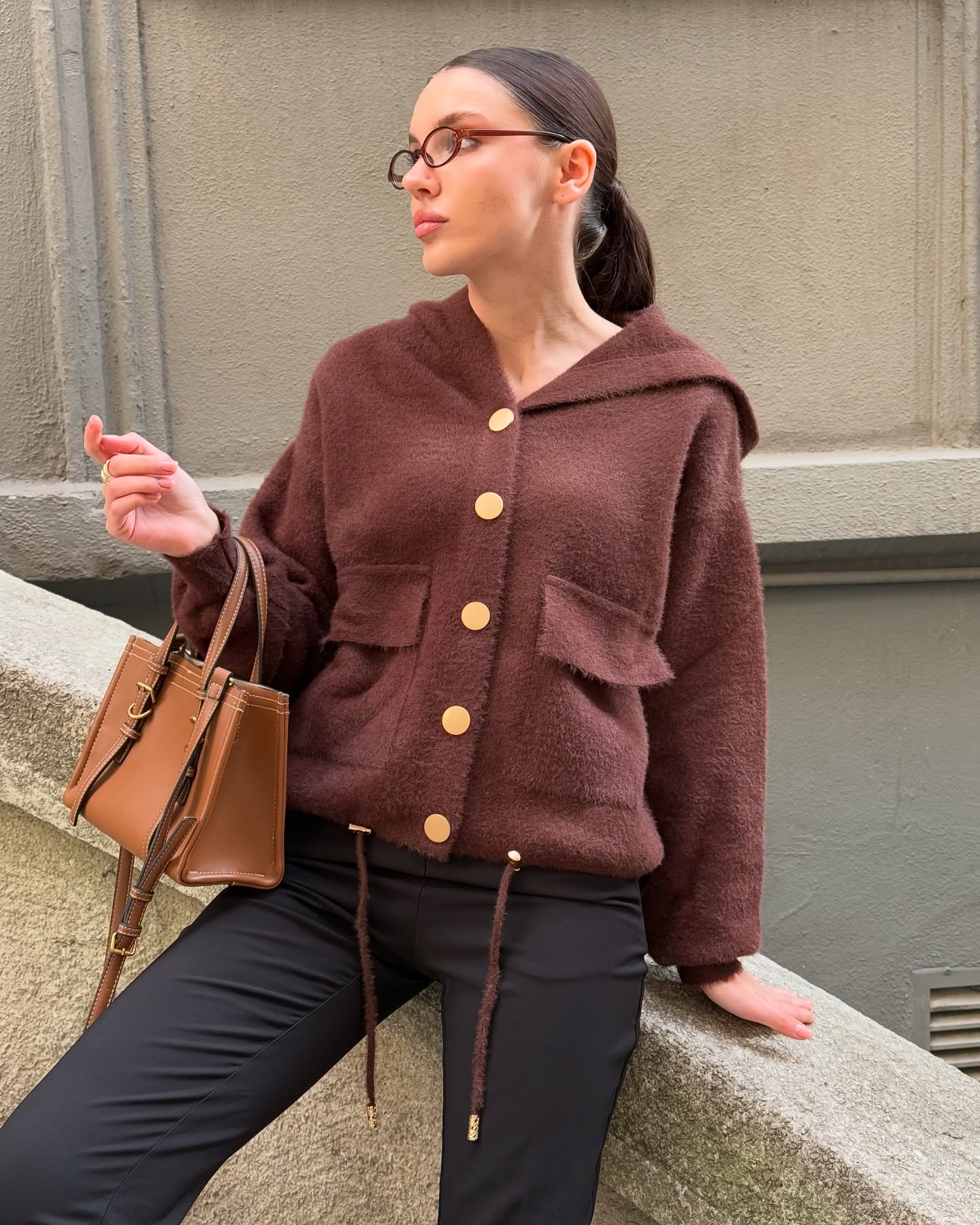 Tüylü Kadın Hırka – Gold Çıt Çıtlı Kalın Kışlık Triko, Angora-Efekt %80 Polyamid %20 Polyester